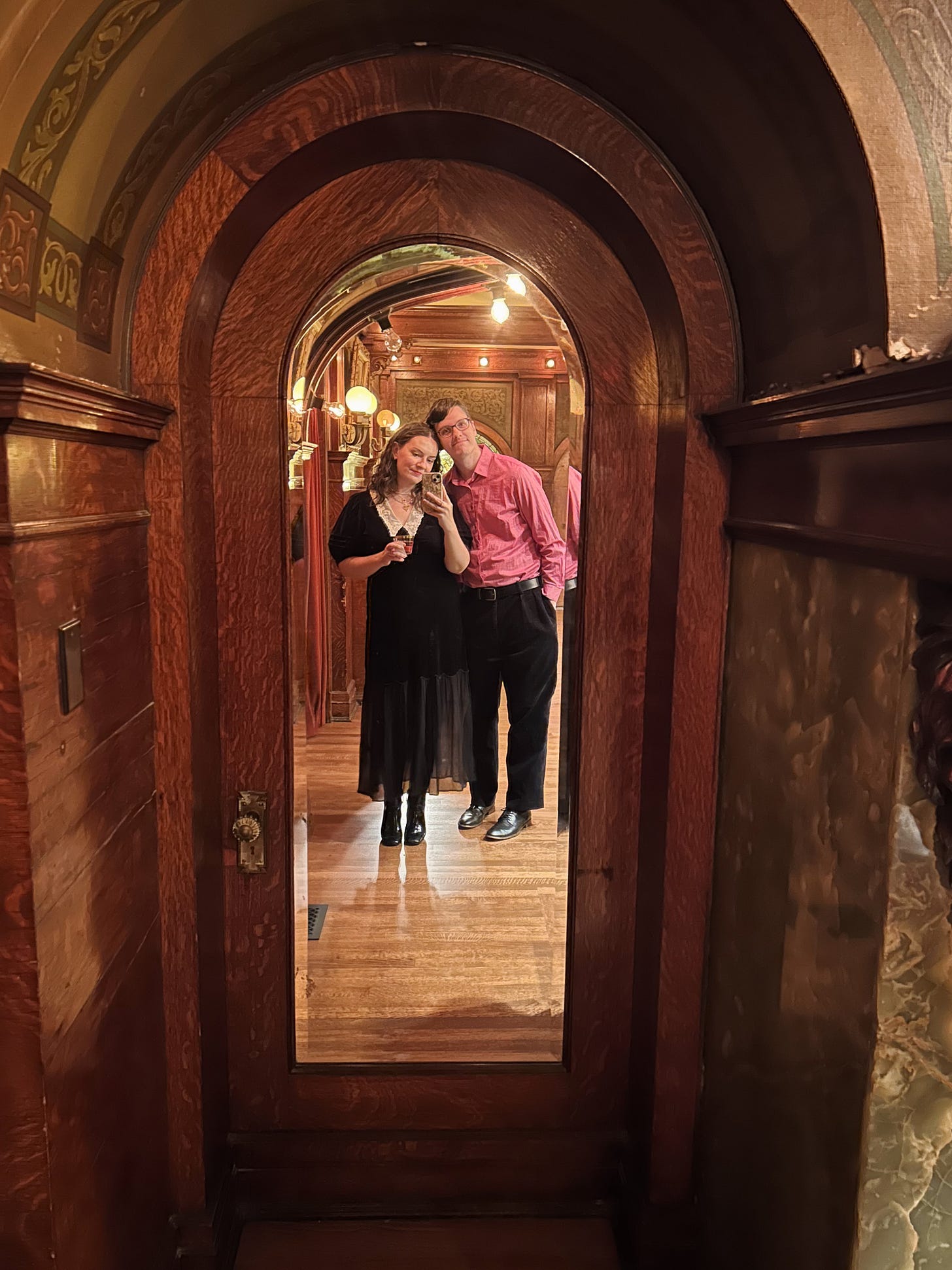 Unbelievable turn-of-the-century venue + champagne and popcorn + flapper girls and their naughty romps = a date night tailored just for us